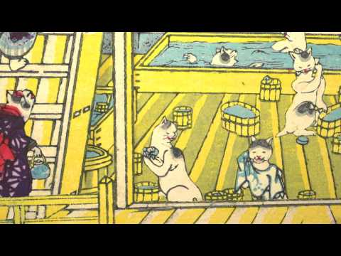 This video is an animation based on a Japanese woodcut called "Popular Hotspring Spa (of Cats)." It's from 1880, but artist Utagawa Yoshifuji's imaginary world of spa cats looks like something that's unfolding at the intersection of LOLcat and internetville.